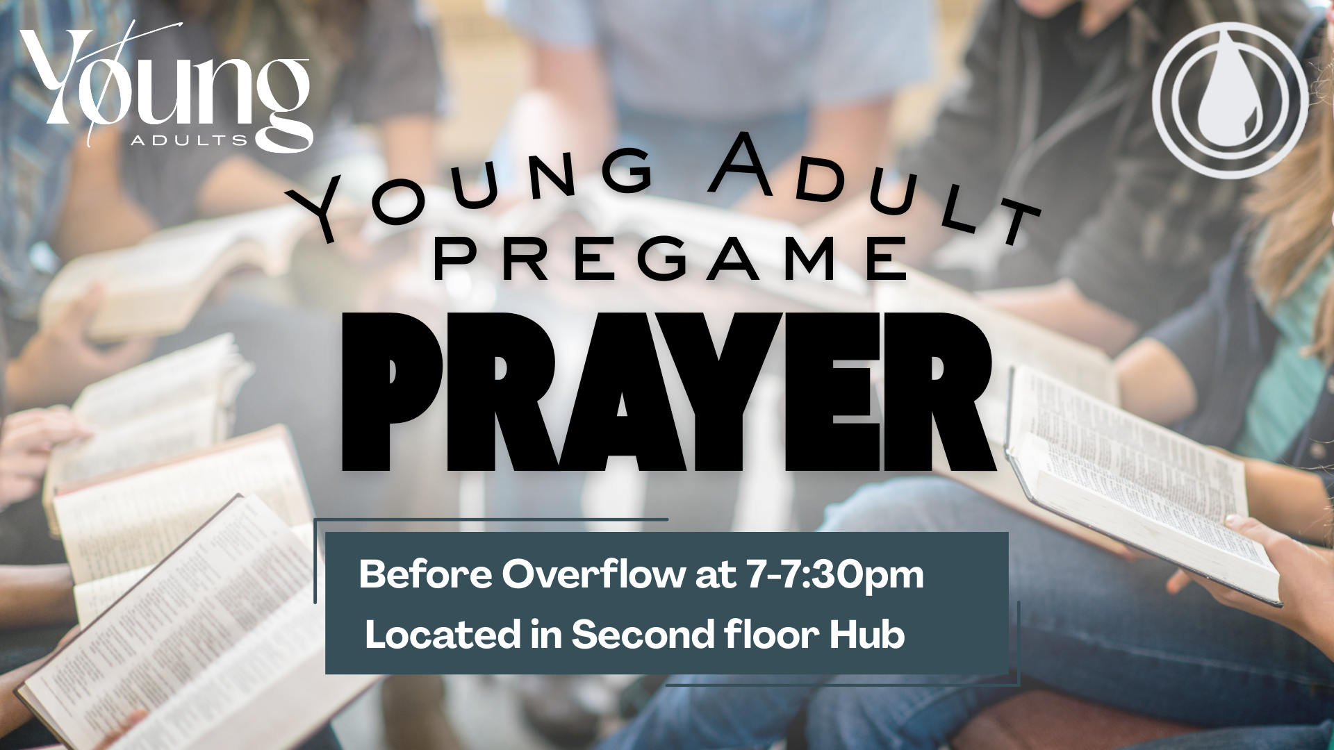 Every Tuesday from 7:15–7:30 pm, we’ll rally together for prayer before Overflow. Think of it as our spiritual warm-up—focused, uplifting, and full of expectation for what God is going to do.
