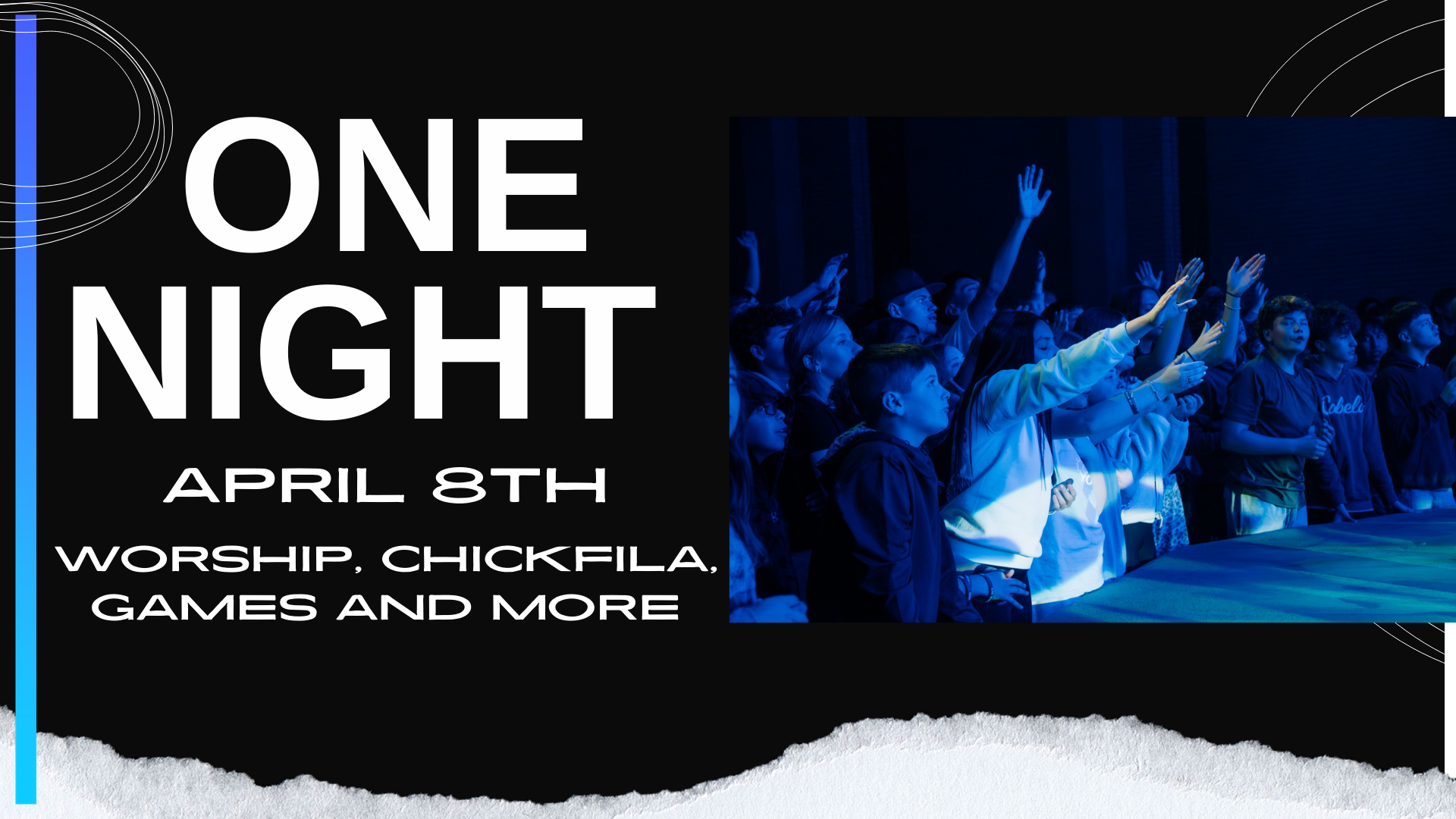 Join us for our ONE Night. This will be a night like no other, with free Chickfila, Games, Worship and giveaways.